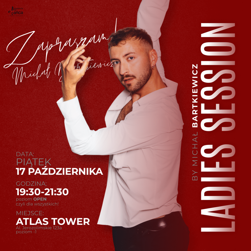 Michał Bartkiewicz to instruktor, który łączy ogromne doświadczenie z wyjątkowym podejściem do uczestniczek – jego zajęcia to nie tylko nauka choreografii, ale także praca nad ekspresją, świadomością ciała i pewnością siebie. Ladies Session to doskonała propozycja zarówno dla tych z Was, które już tańczą, jak i dla osób, które chcą spróbować czegoś nowego i poczuć się bardziej kobieco na parkiecie.