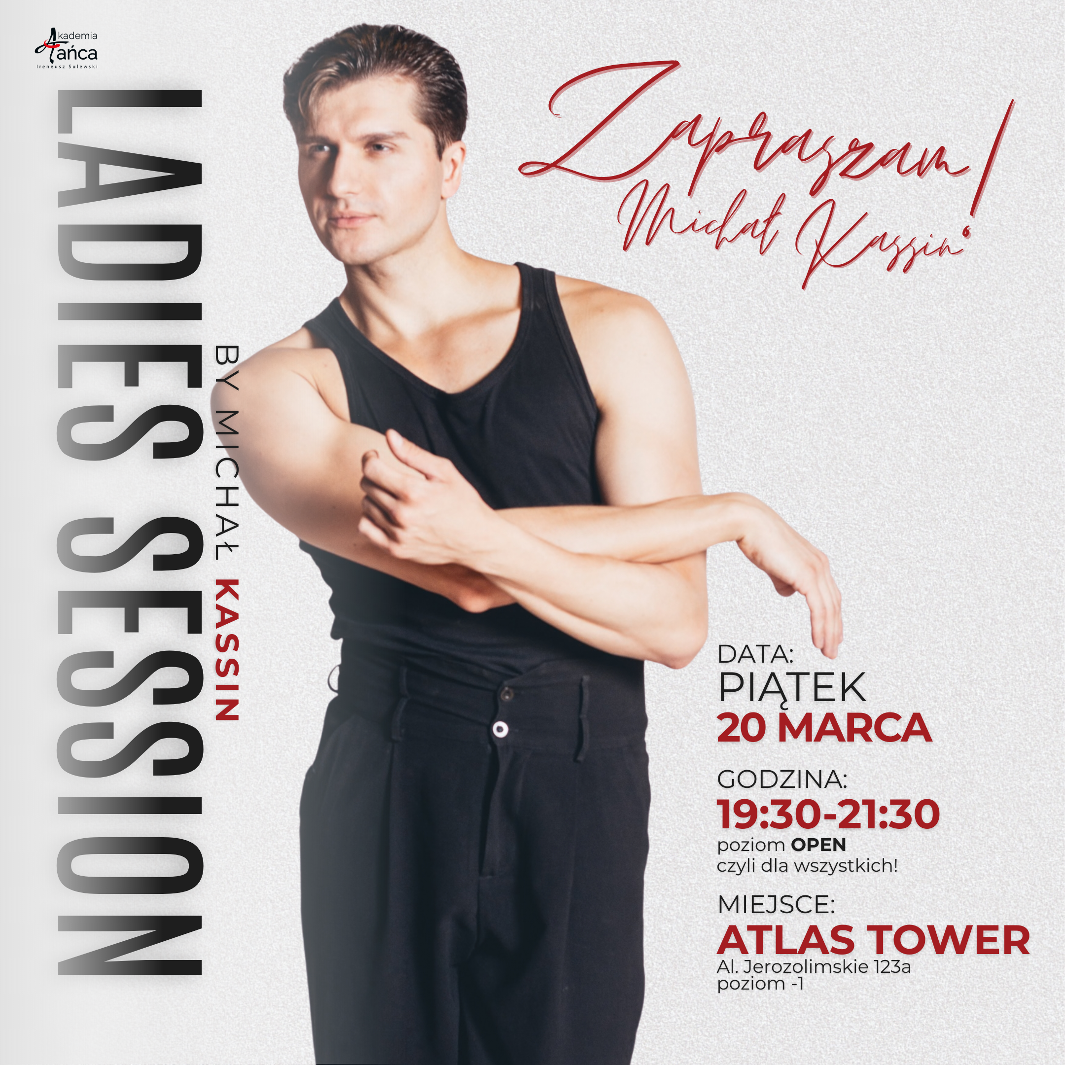 Wyjątkowe zajęcia LADIES SESSION z NAJLEPSZYM Michałem Kassinem! Zapraszamy wszystkie Panie na kurs w całości poświęcony odkrywaniu kobiecości w tańcu!